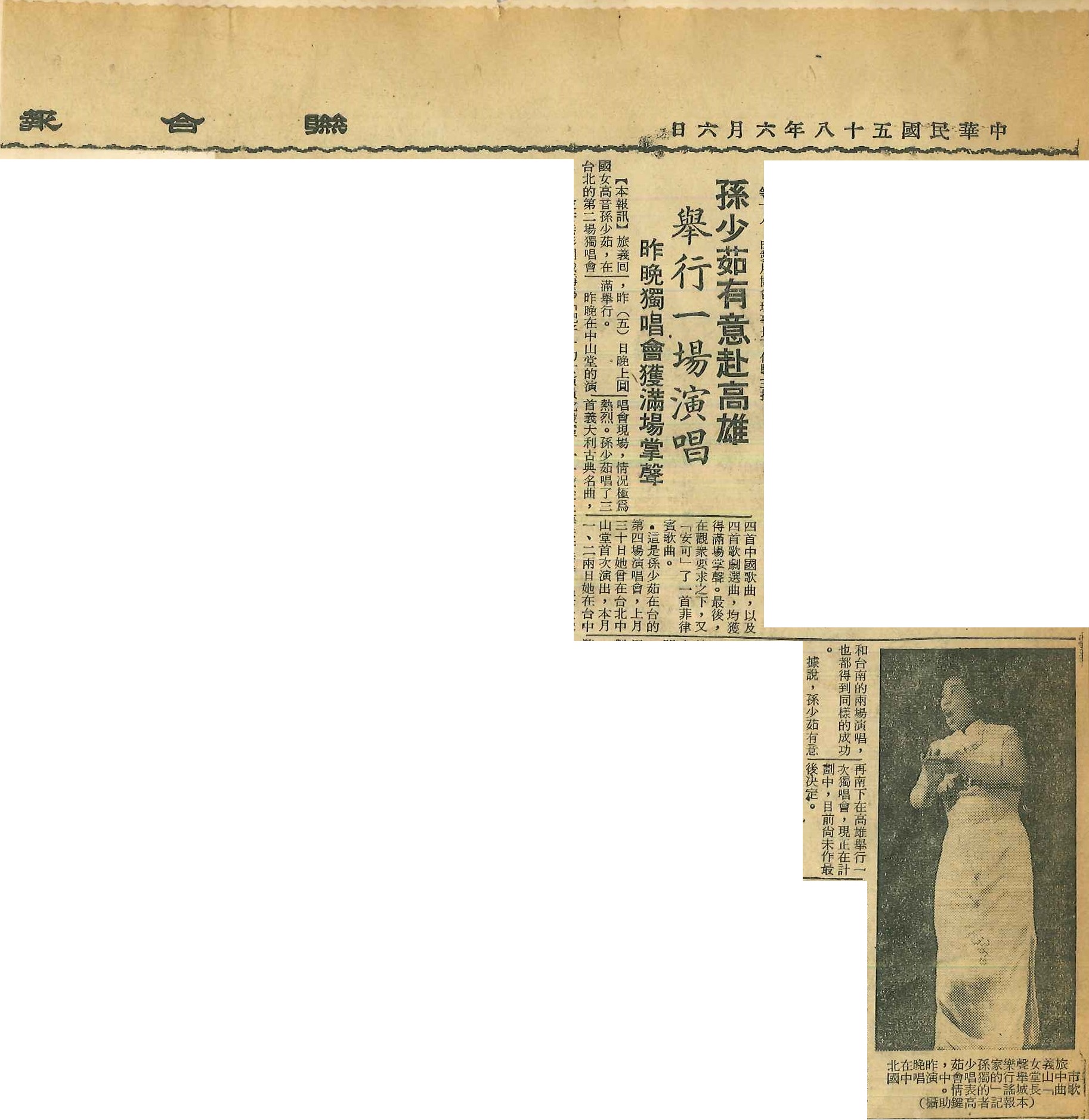 孫少茹有意赴高雄 舉行一場演唱 昨晚獨唱會獲滿場掌聲