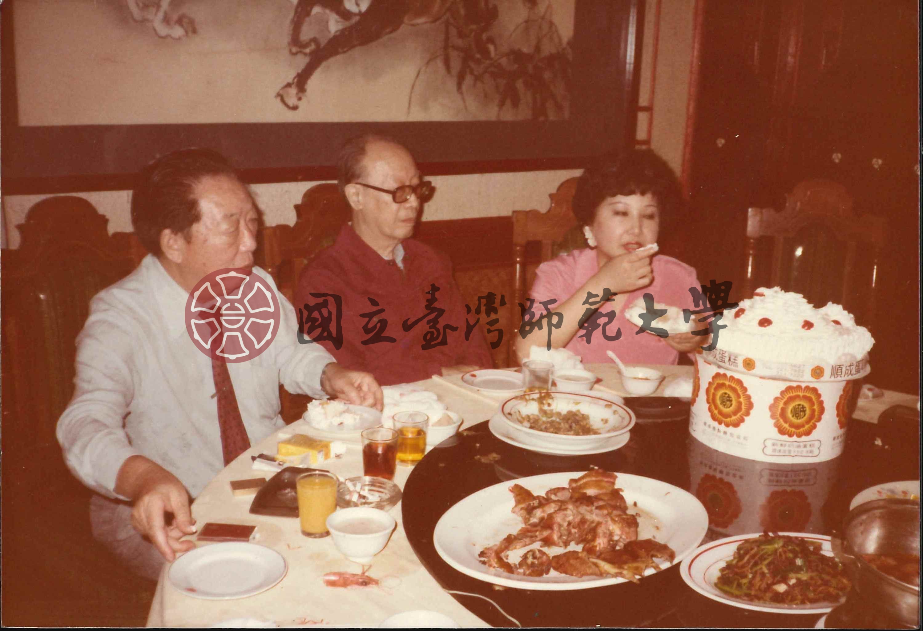 梁實秋、韓菁清等三人用餐照