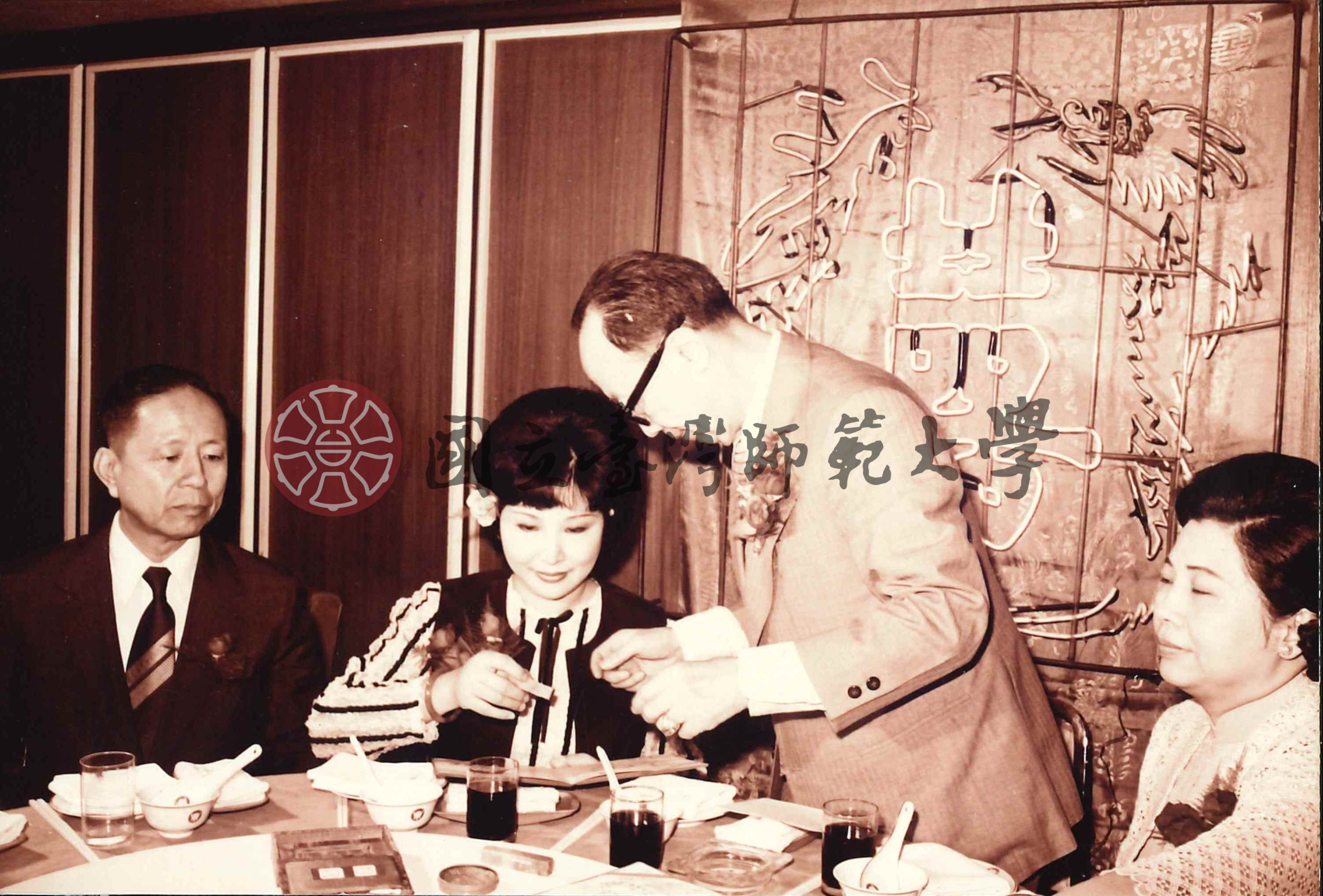 梁實秋、韓菁清等四人餐桌前照梁實秋與韓菁清婚宴