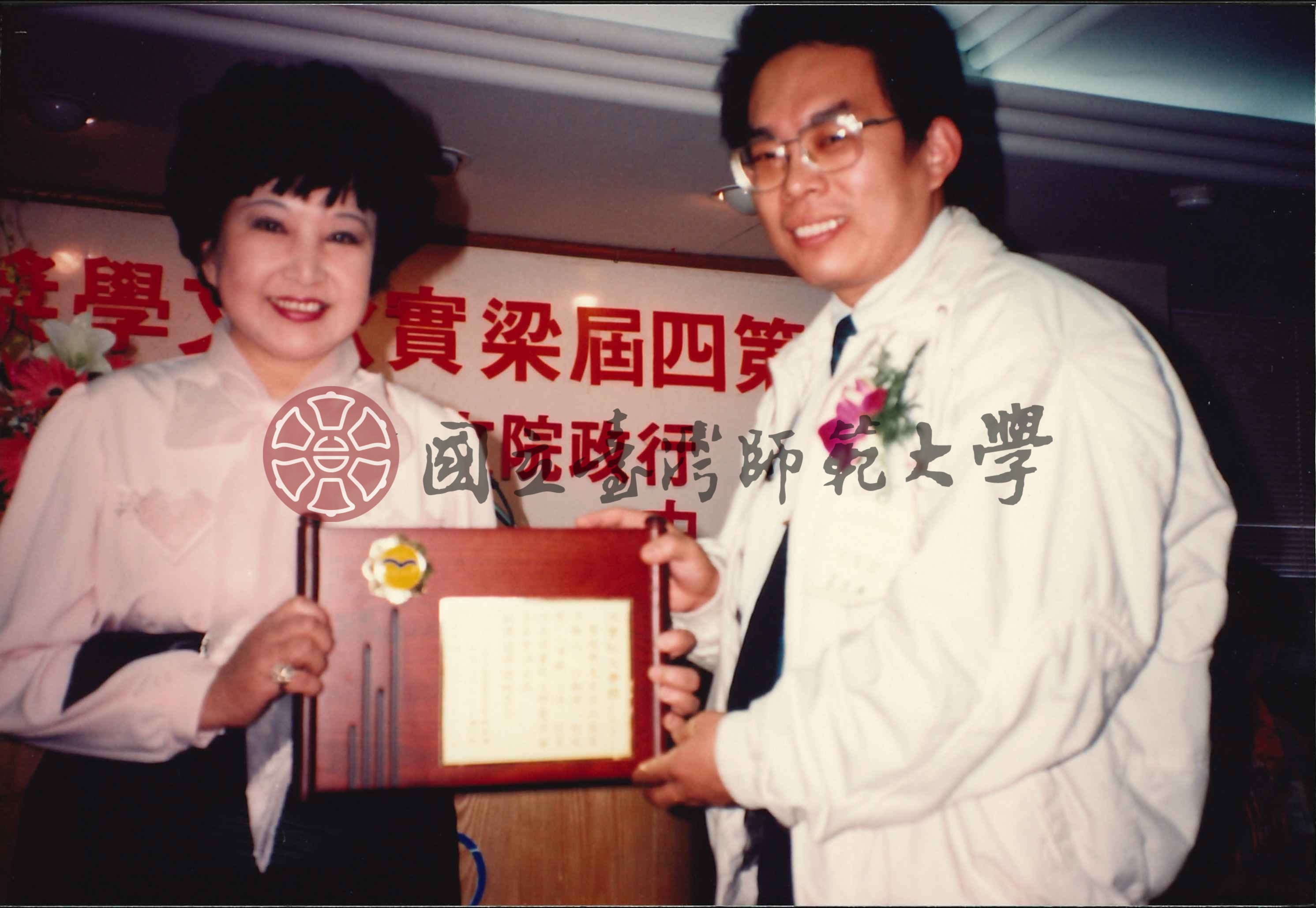 韓菁清等兩人合照第四屆梁實秋文學獎贈獎典禮