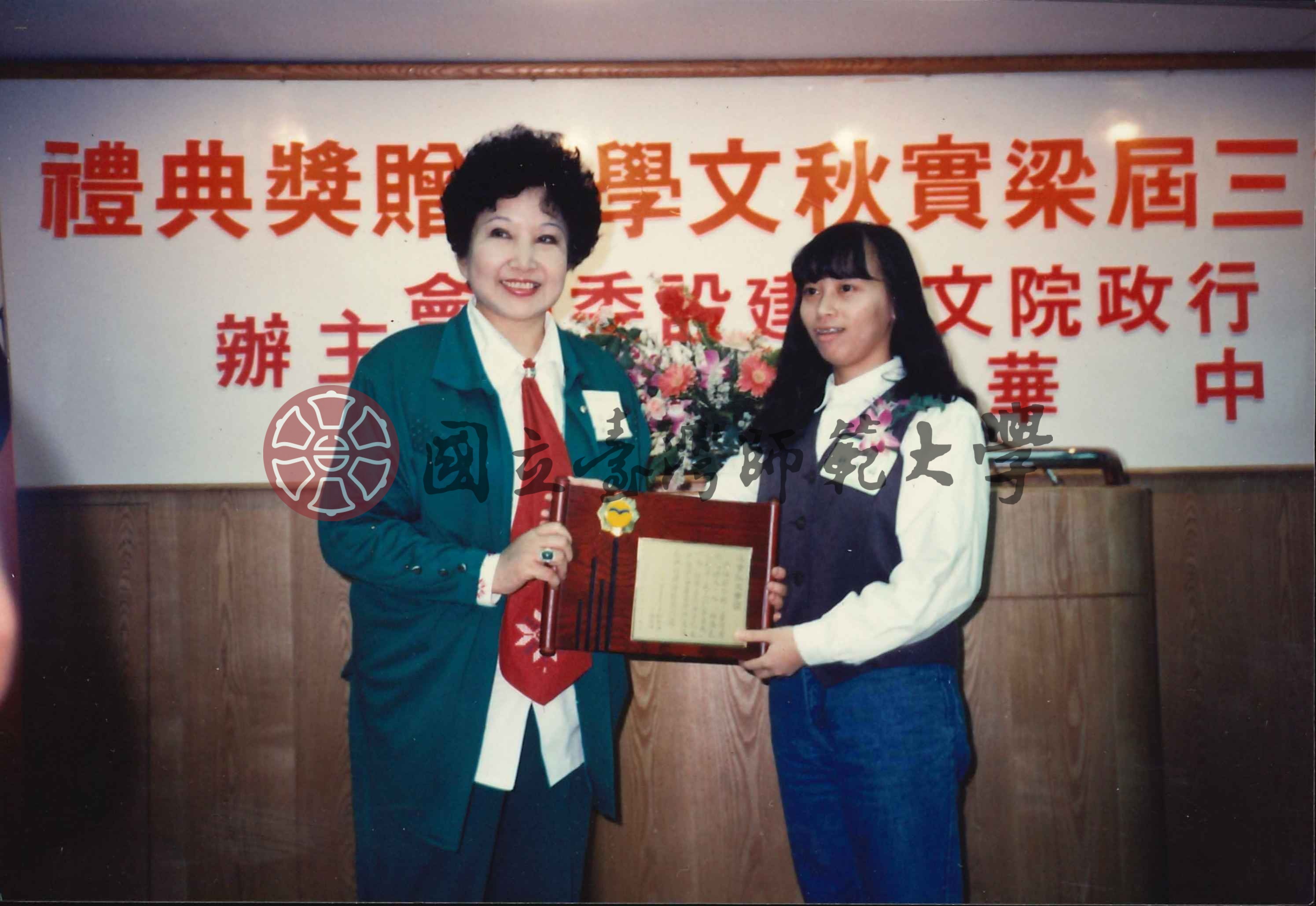韓菁清等兩人合照第四屆梁實秋文學獎贈獎典禮