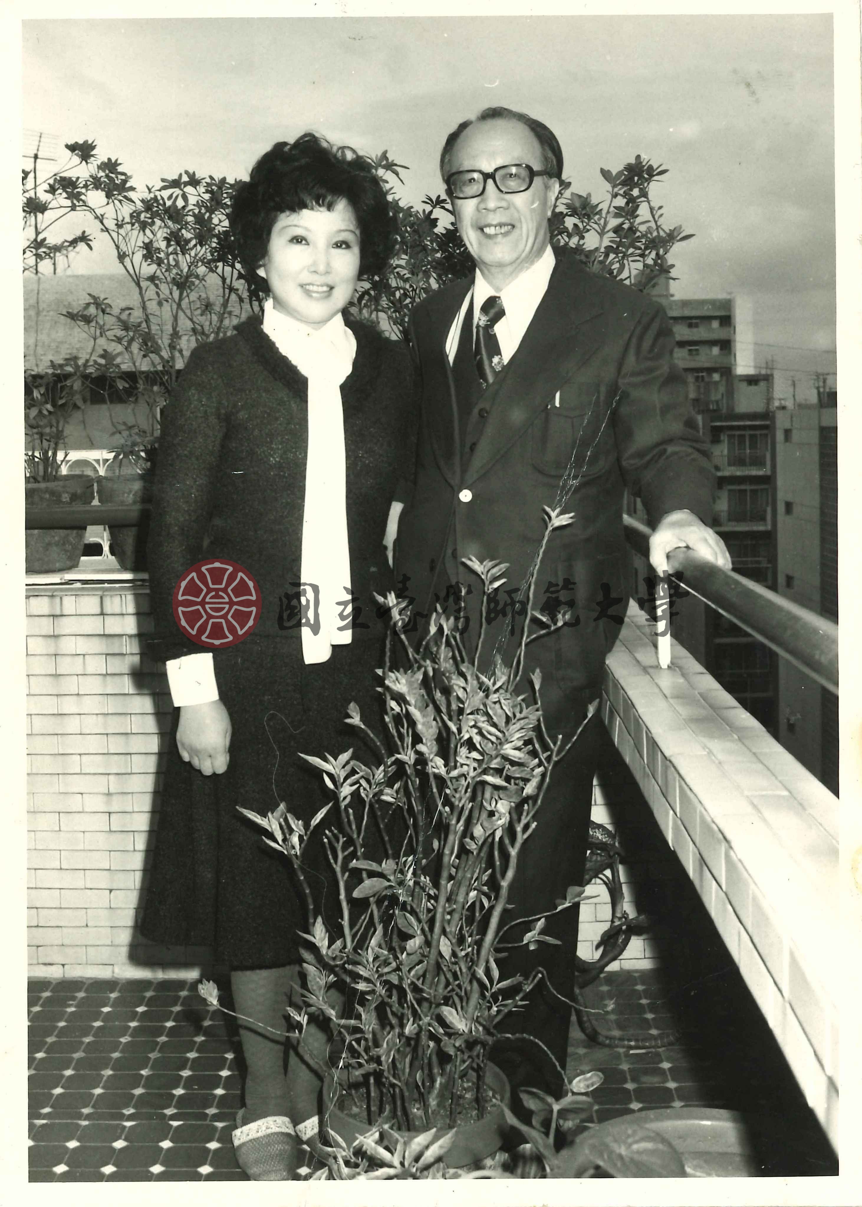 梁實秋與韓菁清於陽台合照