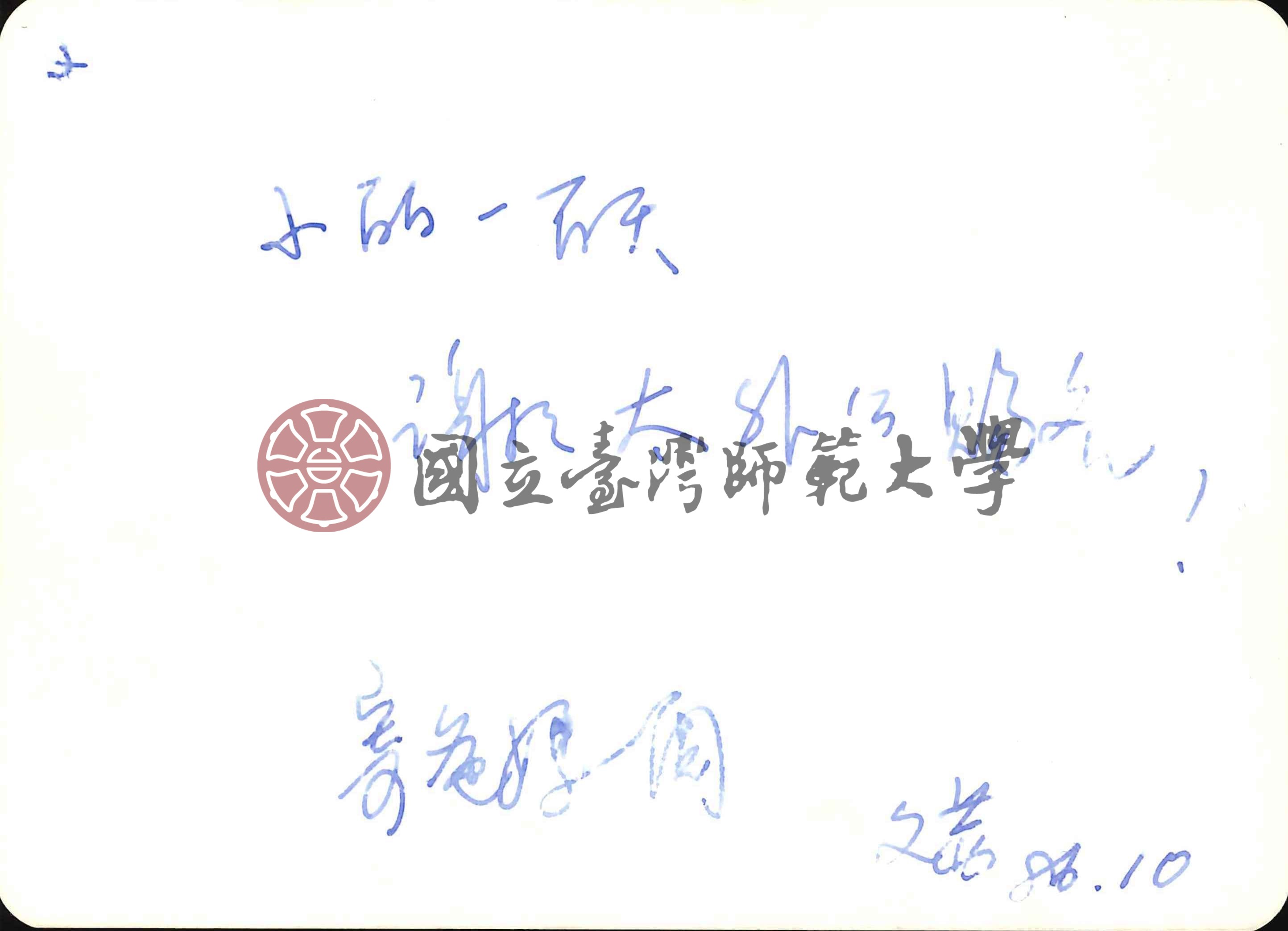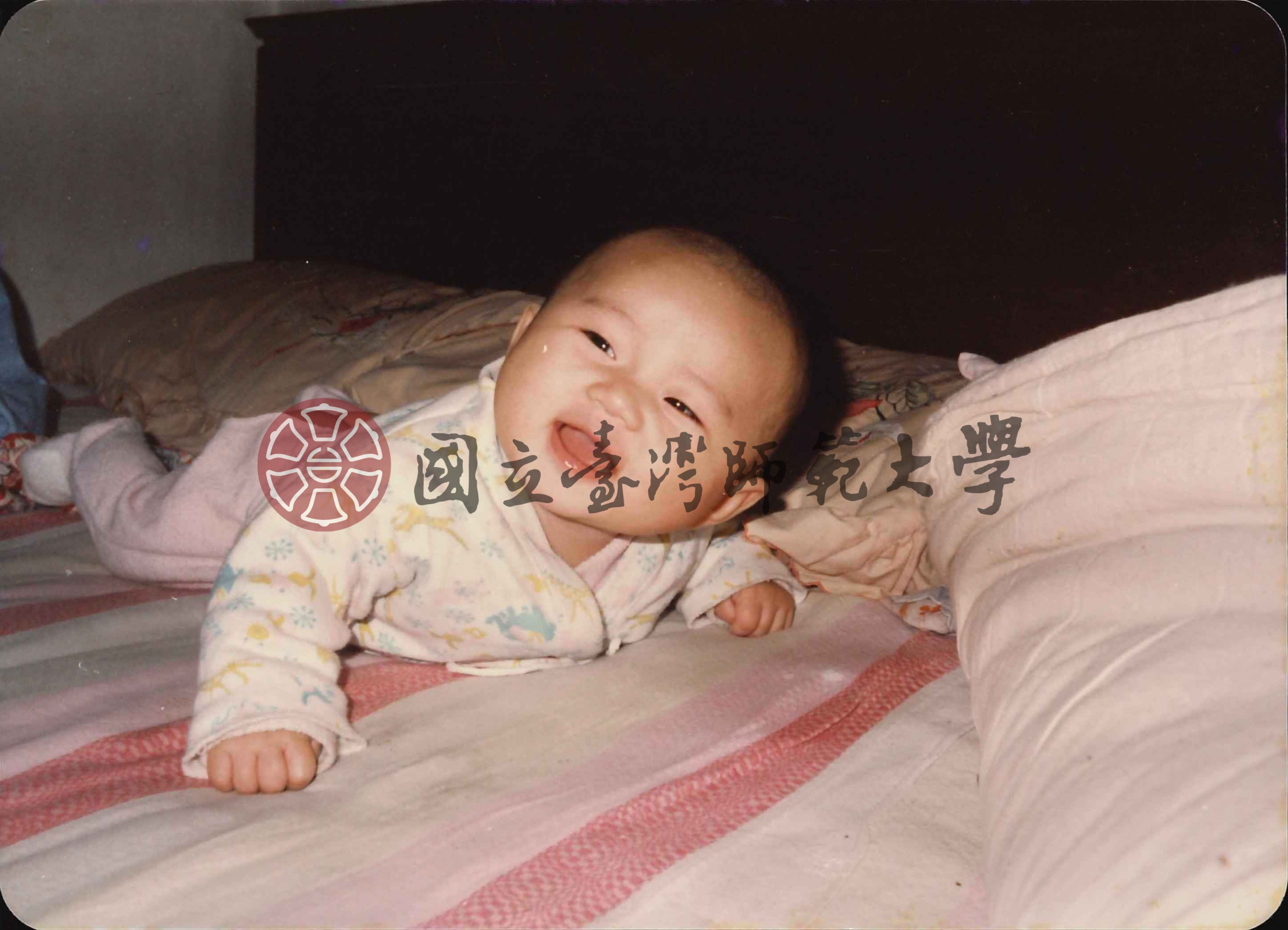 梁實秋家人照。背後標註「小麗一百天 謝太外公賜名! 寄爸媽一閱 文茜86.10」