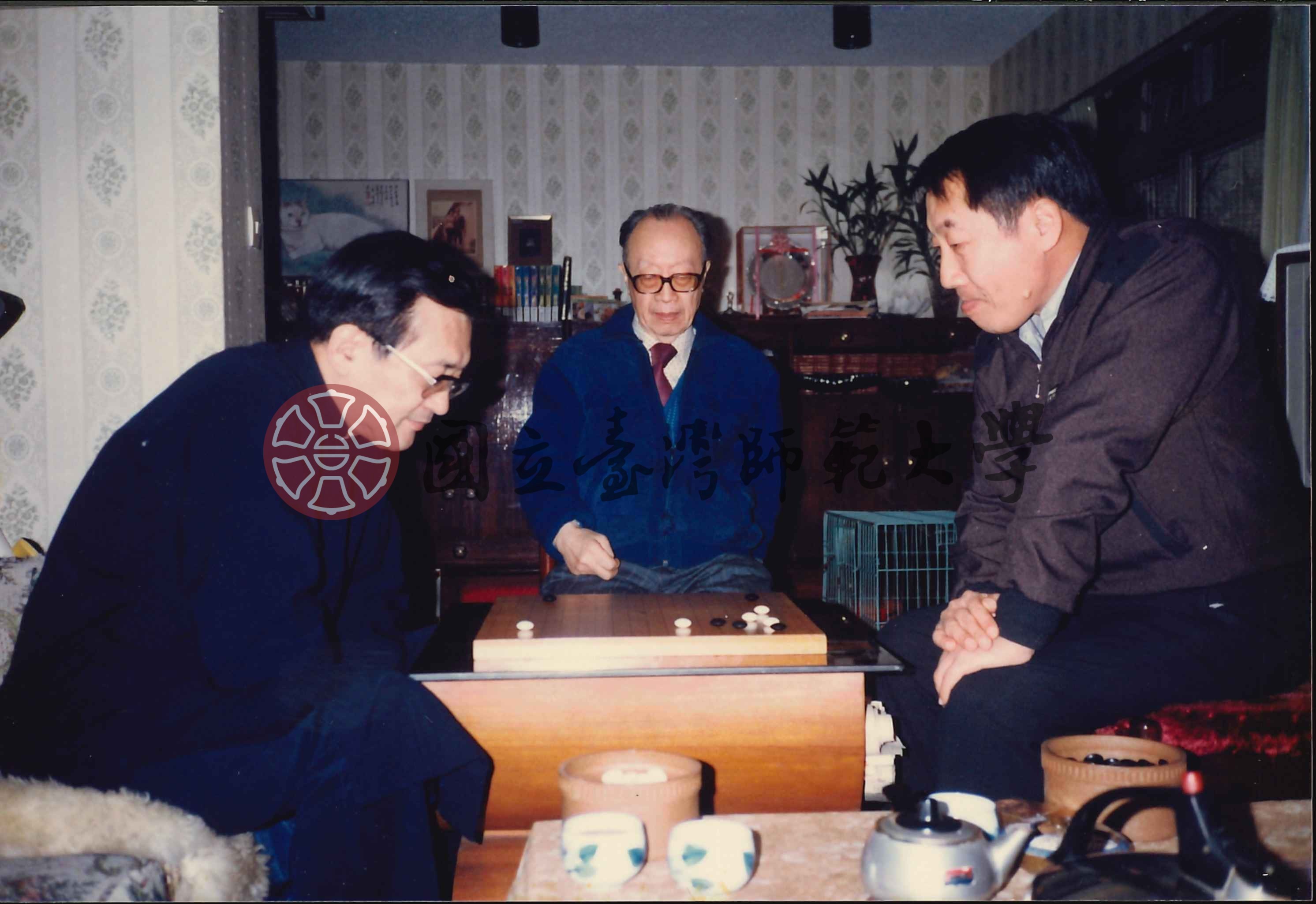 梁實秋觀棋、梁文騏下棋合照