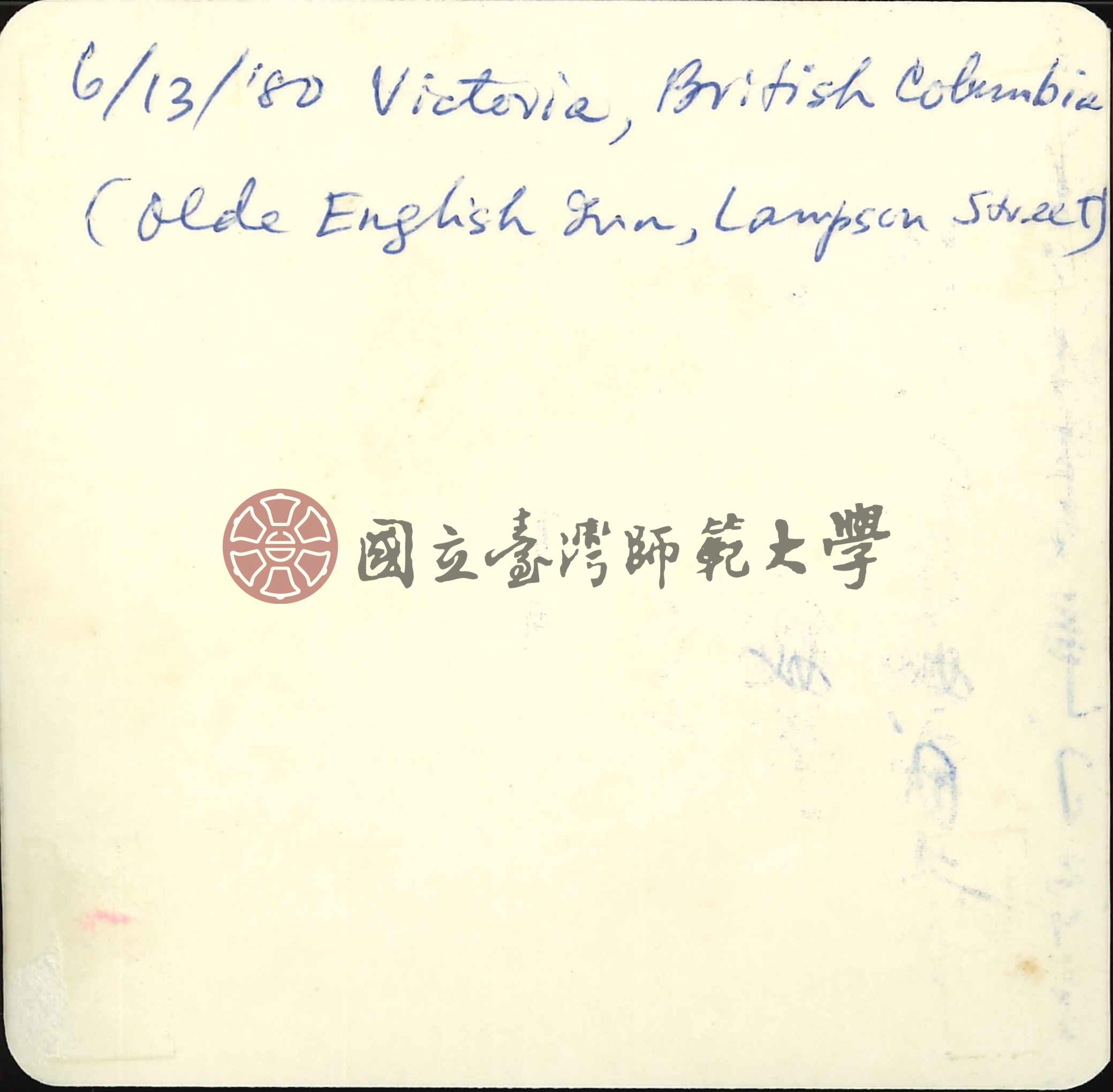 背面標註「6/13/'80 Victoria, British Columbia(Olde English inn , Lampson street)」