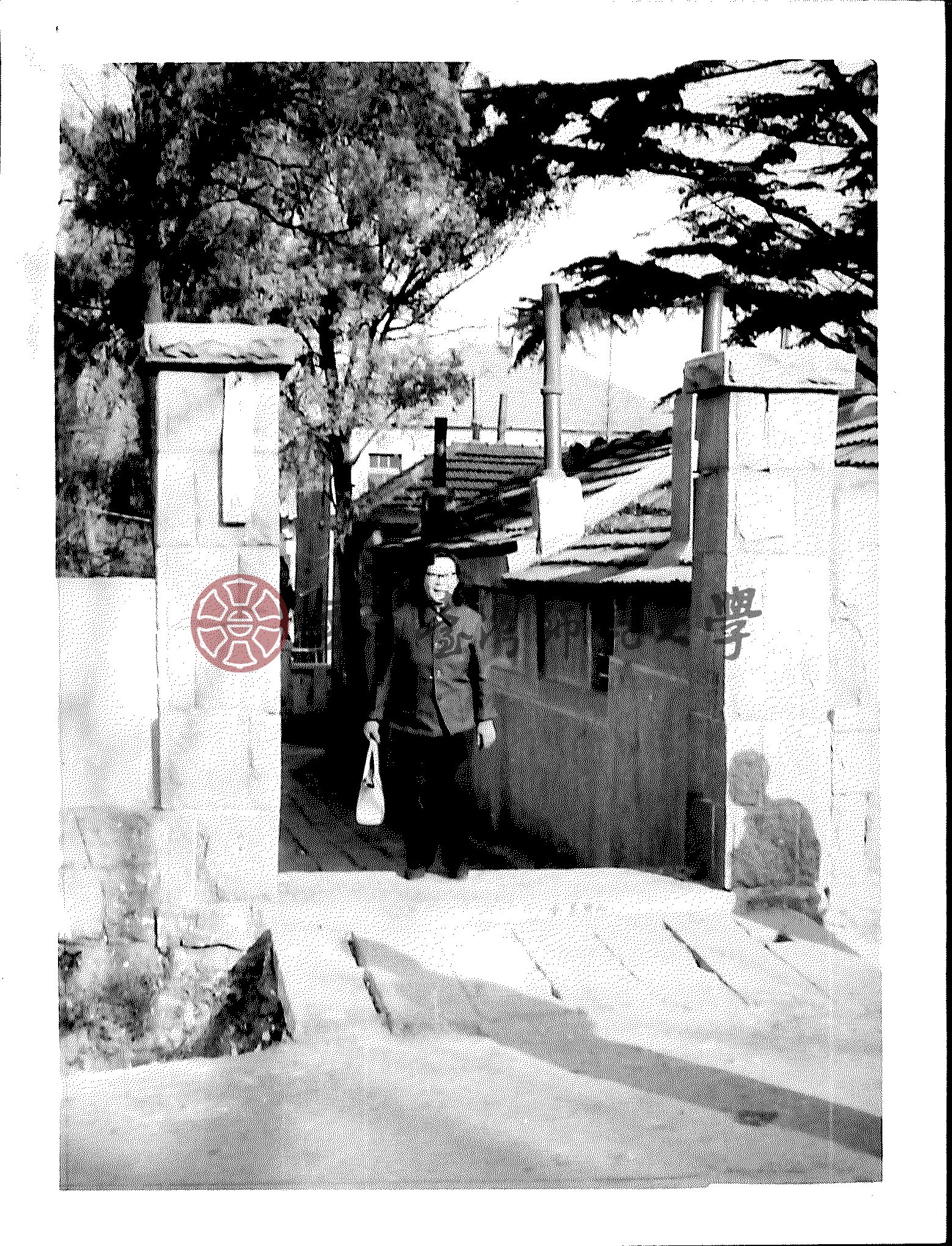 梁文茜於青島魚山路七號舊居門黑白獨照