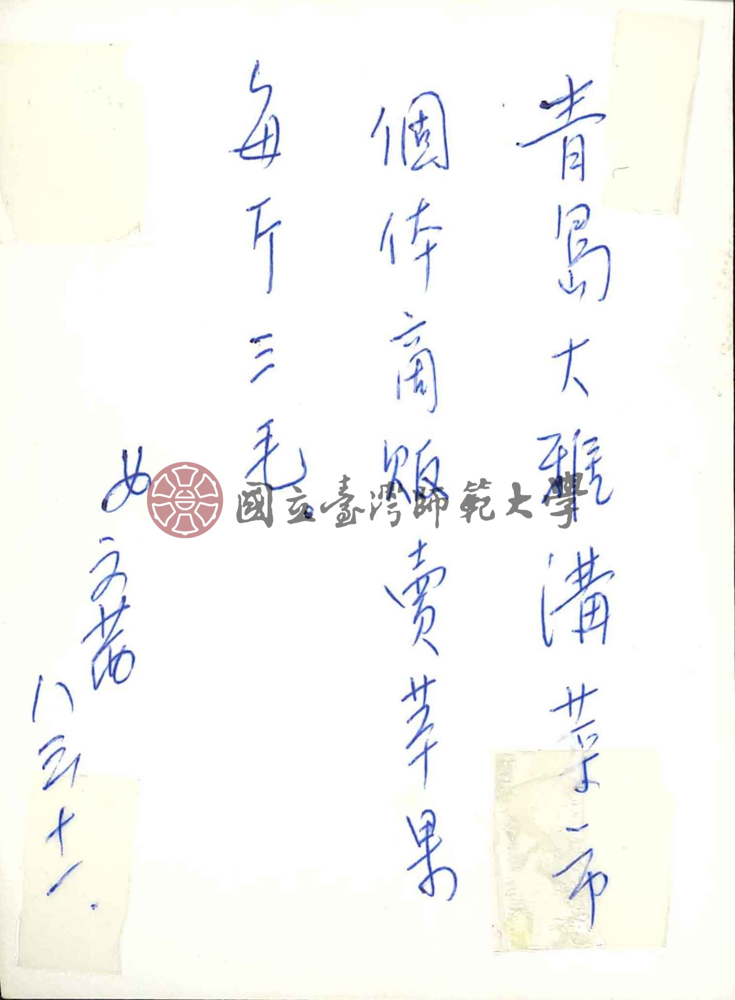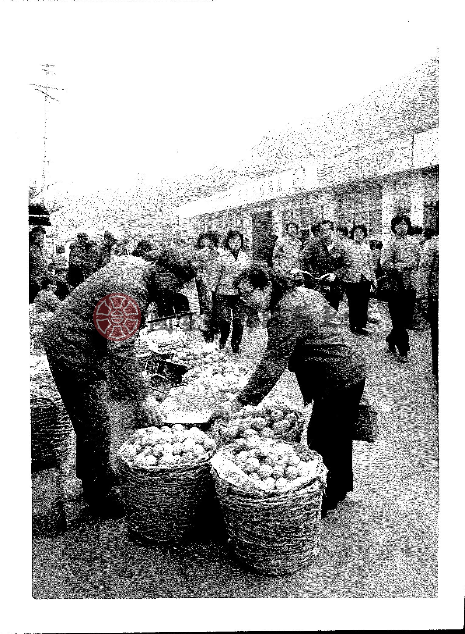 背面標註「青島大雅溝菜市,個体攤商販賣苹果每斤三毛。 女 文茜 八三、十一」