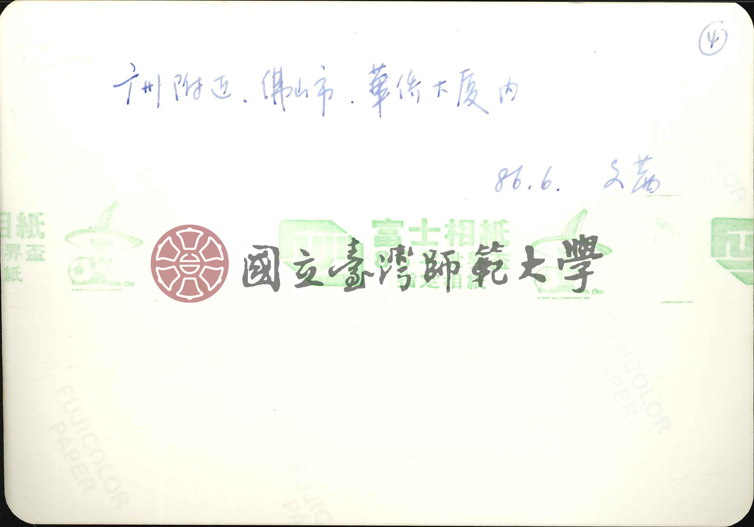 背面標註「廣州附近、佛山市、華僑大廈內 86.6 文茜」