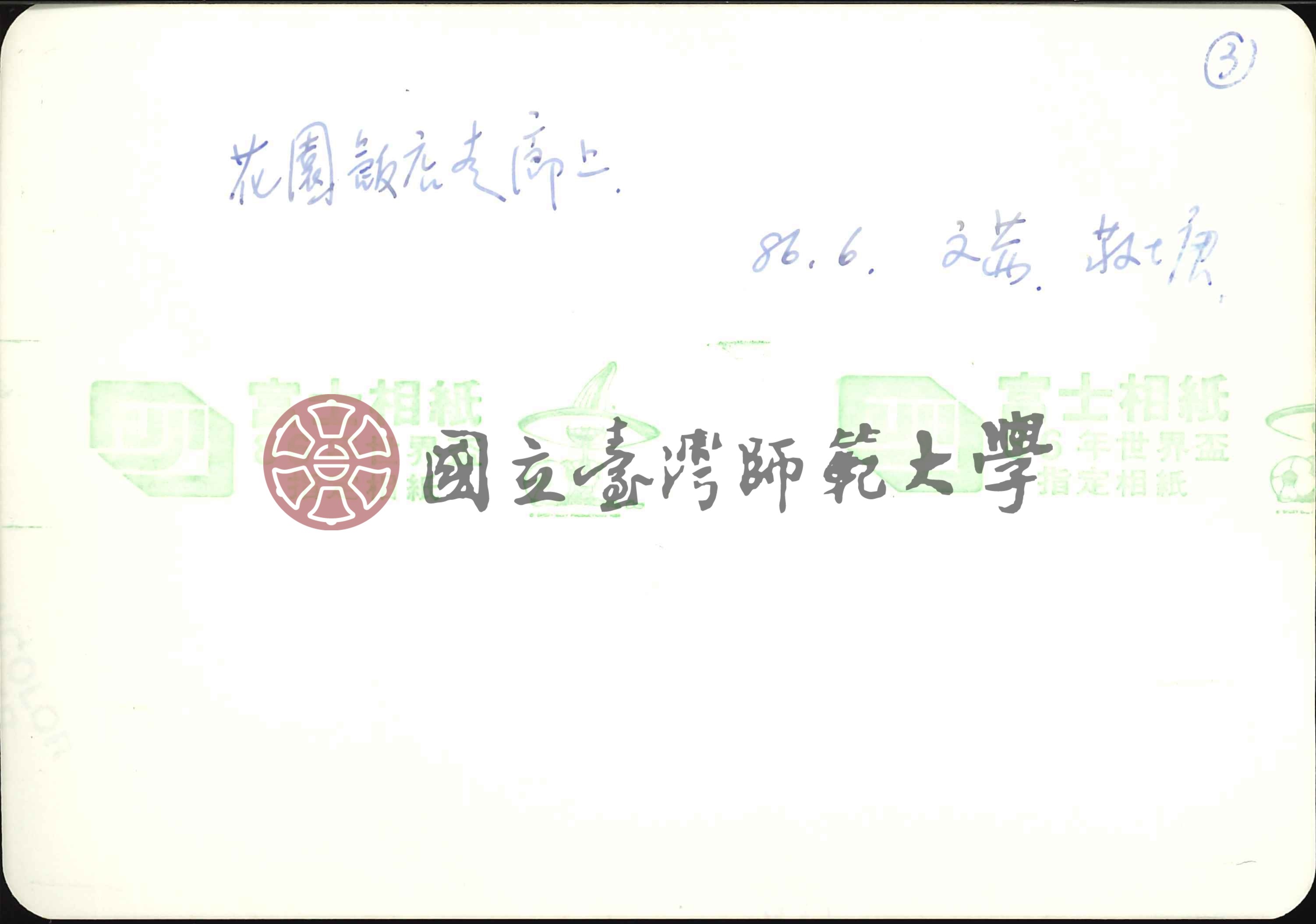 背面標註「花園飯店走廊上 86.6 文茜、敬塘」