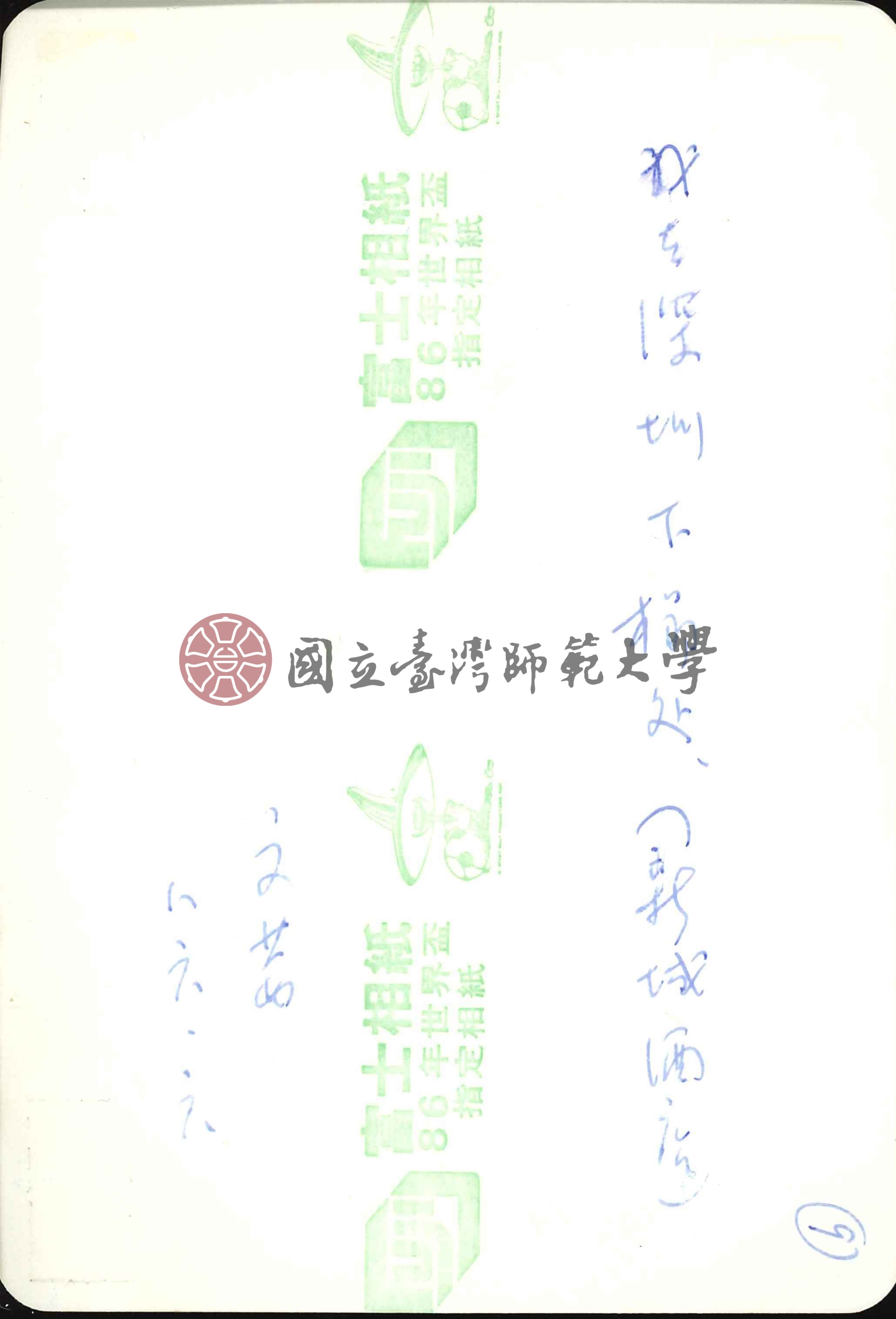 背面標註「我在深圳下榻處(新城酒店)文茜 86.6」