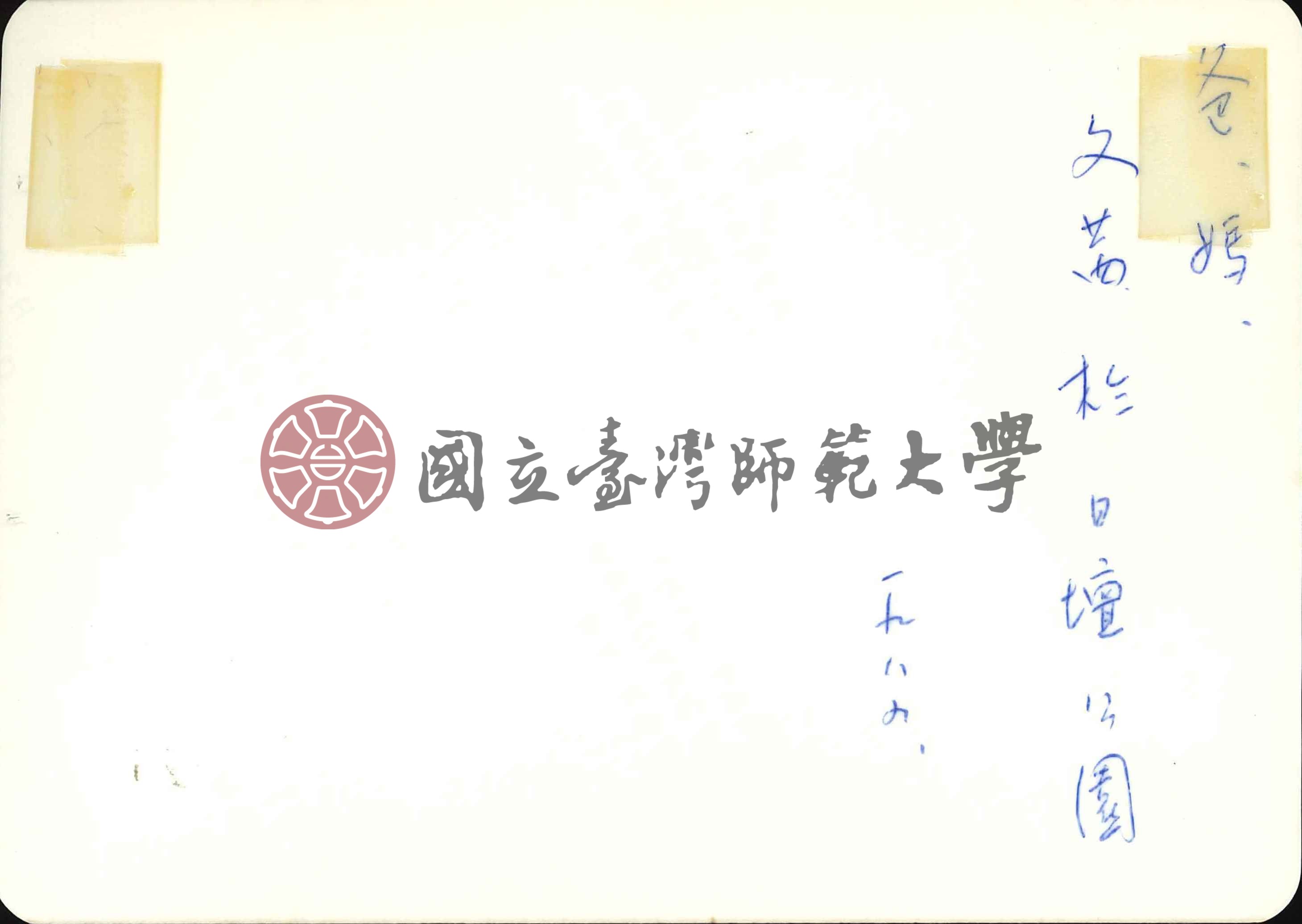 背面標註「爸媽:文茜於日壇公園。一九八九」