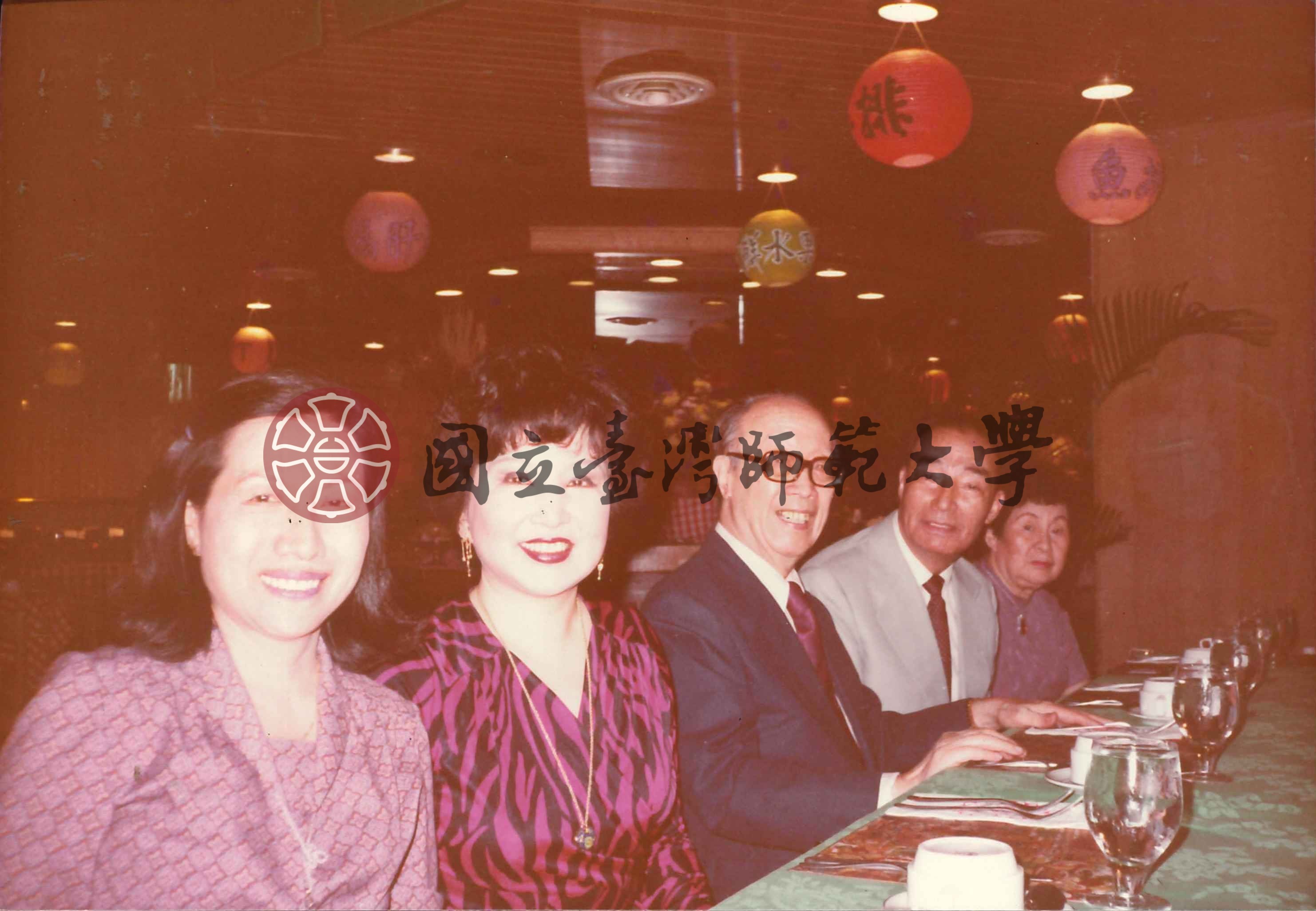 梁實秋、韓菁清、劉真等五人餐桌前合照