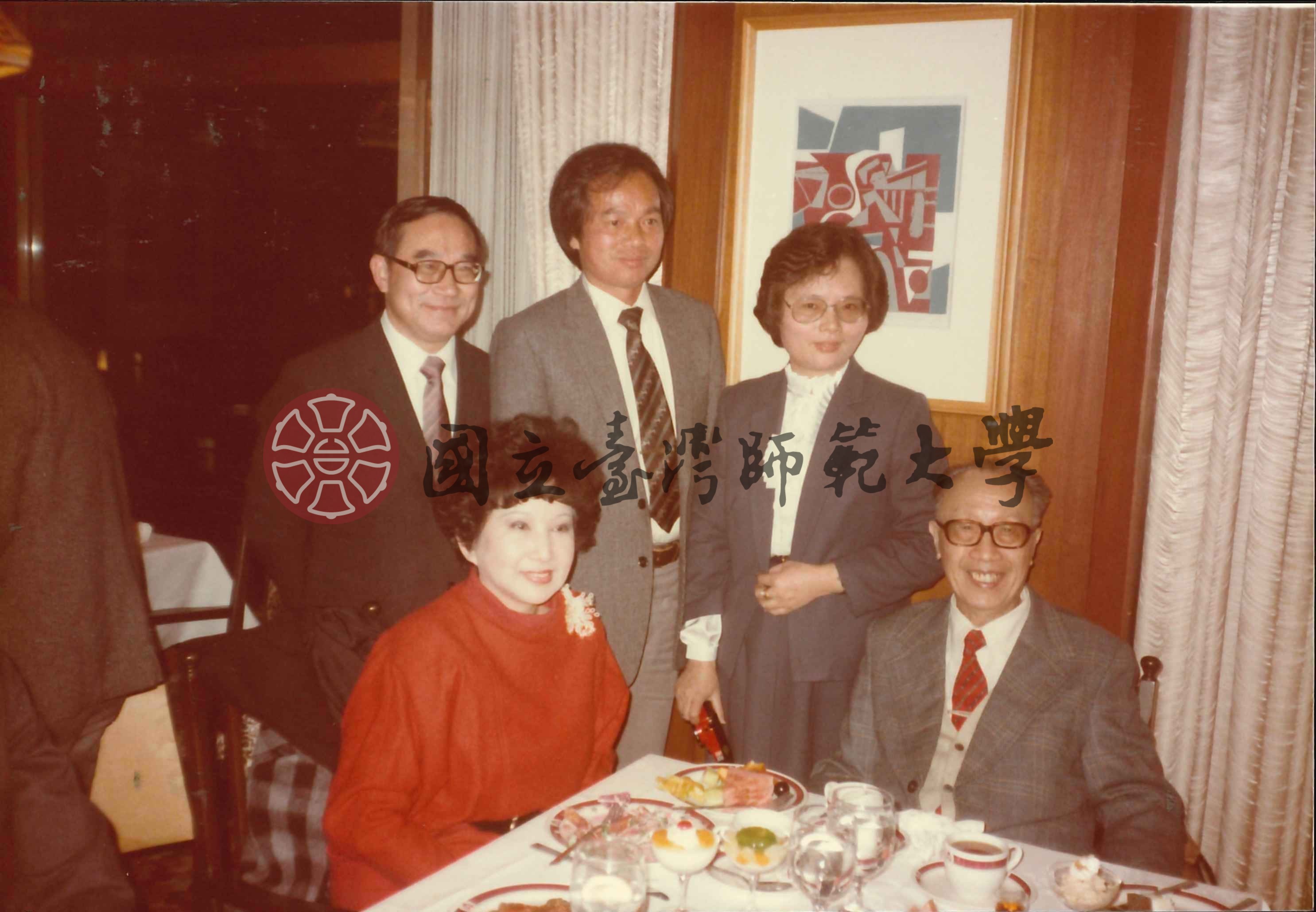 梁實秋、韓菁清等五人餐桌前合照
